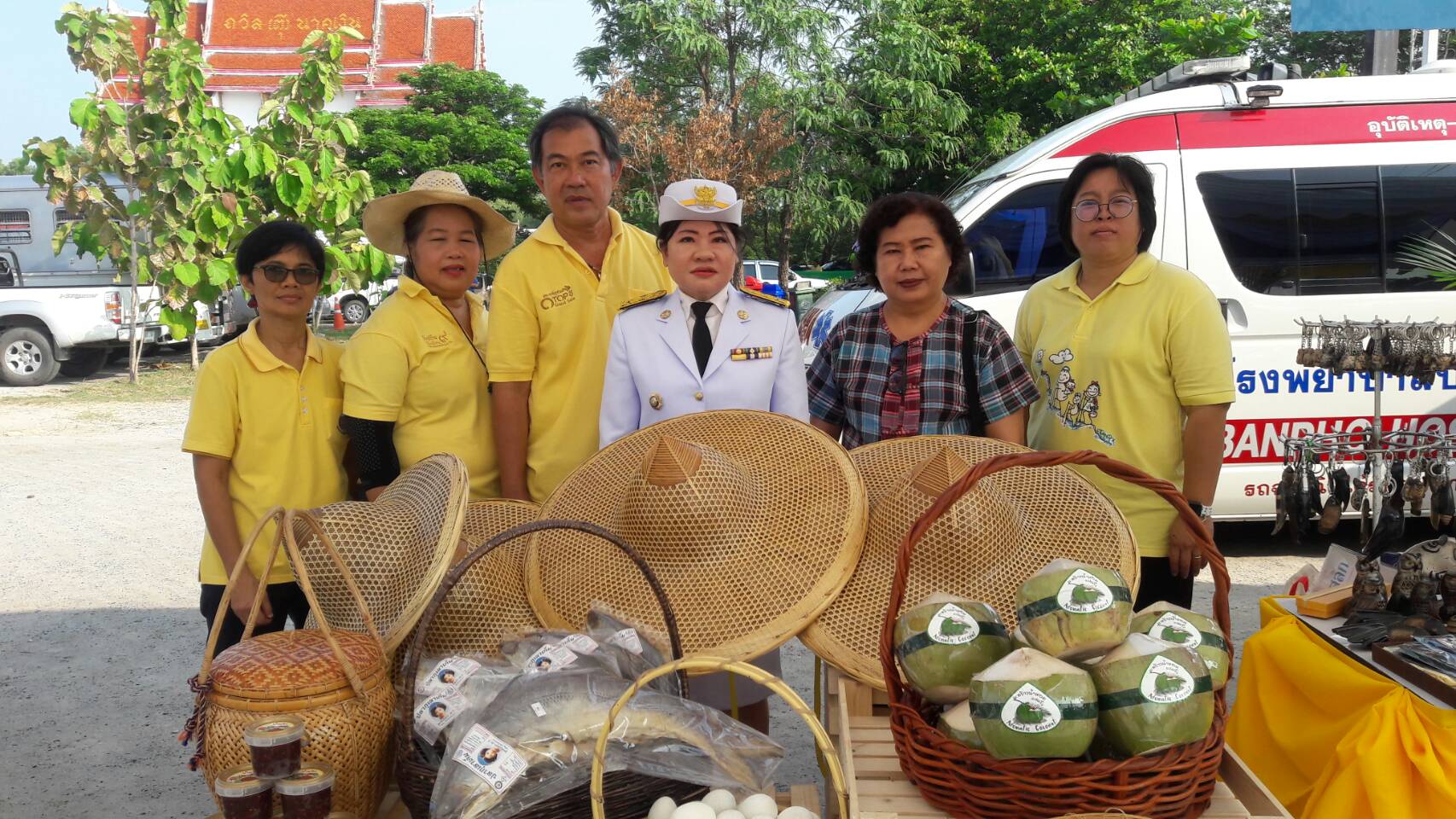 นางสาวฉัตรประอร นิยม พันาการจังหวัดฉะเชิงเทรา พร้อมด้วยนายปัณณธร ล่ามแขก หน.กง.ส่งเสริมฯ นางนงลักษณ์ รักราวี พัฒนาการอำเภอบางประกง และเจ้าหน้าที่พัฒนาชุมชน นำผู้ผลิต ผู้ประกอบการผลิตภัณฑ์ OTOP และผลิตภัณฑ์ชุมชน จัดแสดงและจำหน่ายในพิธีรับเสด็จฯผู้แทนพระองค์(หม่อมเจ้าชาตรีเฉลิม ยุคล) ถวายผ้าไตร เครื่องสังฆทาน และไทยธรรมพระราชทานแด่พระสงค์ในพื้นที่จังหวัดฉะเชิงเทรา