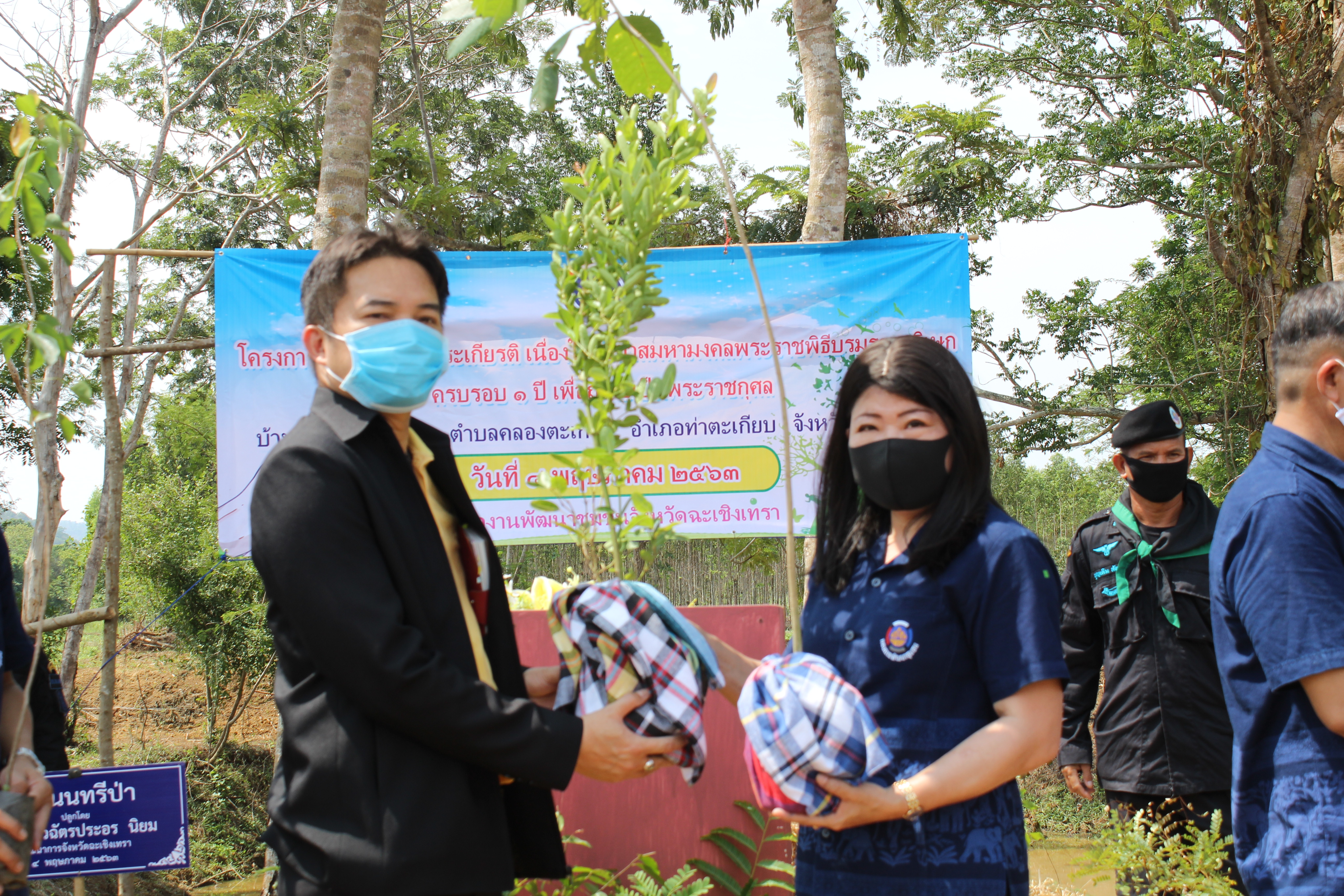 วันที่ 4 พฤษภาคม 2563 เวลา 10.09 น. นางสาวฉัตรประอร นิยม พัฒนาการจังหวัดฉะเชิงเทรา เป็นประธานในพิธี “โครงการปลูกป่าเฉลิมพระเกียรติ เนื่องในโอกาสมหามงคลพระราชพิธีบรมราชาภิเษก ครบรอบ 1 ปี เพื่อถวายเป็นพระราชกุศล จังหวัดฉะเชิงเทรา” วัตถุประสงค์เพื่อเฉลิมพระเกียรติเนื่องในโอกาสมหามงคลพระราชพิธีบรมราชาภิเษก ครบรอบ 1 ปี ของพระบาทสมเด็จพระปรเมนทรรามาธิบดีศรีสินทรมหาวชิราลงกรณ พระวชิรเกล้าเจ้าอยู่หัว เพิ่มพื้นที่ป่า รักษาระบบนิเวศและปลูกจิตสำนึกในการอนุรักษ์ทรัพยากรธรรมชาติและป่าไม้ เพื่อสร้างความมั่นคงทางอาหาร สร้างสิ่งแวดล้อมให้ยั่งยืนและสร้างภูมิคุ้มกันทางสังคม พร้อมส่งเสริมและขยายผลการปลูกป่า 3 อย่าง ประโยชน์ 4 อย่าง โดยได้น้อมนำหลักปรัชญาของเศรษฐกิจพอเพียง มาสู่การปฏิบัติเพื่อให้ประชาชนมีความสุข ความสมดุลในการดำเนินชีวิต ภายใต้สิ่งแวดล้อมและทรัพยากรธรรมชาติที่อุดมสมบูรณ์ ได้ดำเนินการขับเคลื่อนทฤษฎีใหม่ของพระบาทสมเด็จพระเจ้าอยู่หัว รัชกาลที่ 9 ประยุกต์สู่ “โคก หนอง นา โมเดล” ครัวเรือนต้นแบบ นายอภิชาติ ดีเหมือน เกษตรกรบ้านหัวฝาย ได้เอื้อเฟื้อพื้นที่ในการดำเนินกิจกรรม