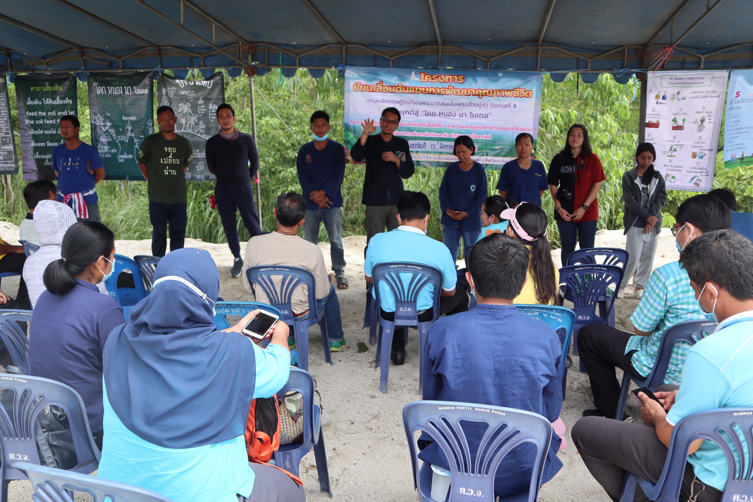 ??วันที่ 13 สิงหาคม 2563 ณ ชุมชนวัดโกรกแก้ววงพระจันทร์ หมู่ที่ 6 ตำบลหนองไม้แก่น อำเภอแปลงยาว นางสาวฉัตรประอร นิยม พัฒนาการจังหวัดฉะเชิงเทรา เข้าร่วมโครงการขับเคลื่อนพัฒนาพื้นที่ต้นแบบการพัฒนาคุณภาพชีวิต ตามหลักทฤษฎีใหม่ของพระบาทสมเด็จพระเจ้าอยู่หัว รัชกาลที่ 9 ประยุกต์สู่ “โคก หนอง นา โมเดล” กิจกรรมที่ 1 ฝึกปฏิบัติการเชื่อมโยงเครือข่ายในพื้นที่ทั้ง 7 ภาคี ด้วยการบูรณาการการทำงานแบบมีส่วนร่วม ในรูปแบบการช่วยเหลือกันและกัน ผ่านการเอามื้อสามัคคี ครั้งที่ 5 ซึ่งได้รับความร่วมกับเครือข่ายศูนย์กสิกรรมธรรมชาติ และทีมอาสา โดยมีอาจารย์ไตรภพ โคตรวงษา ประธานมูลนิธิกสิกรรมธรรมชาติมาบเอื้อง และที่ปรึกษาการดำเนินงาน โคก หนอง นา โมเดล จังหวัดฉะเชิงเทรา เป็นวิทยากรกระบวนการ กลุ่มเป้าหมาย ประกอบด้วย ประชาชนในพื้นที่ และเครือข่ายผู้ผ่านการอบรมหลักสูตรการพัฒนากสิกรรมสู่ระบบเศรษฐกิจพอเพียง พัฒนาการอำเภอ และเจ้าหน้าที่สำนักงานพัฒนาชุมชนอำเภอทุกอำเภอ จำนวน 40 คน กิจกรรมที่ดำเนินการในวันนี้ ได้แก่ การขุดคลองไส้ไก่ ขุดหลุมขนมครก และห่มดินด้วยฟาง เป็นการปรับปรุงพัฒนาพื้นที่ตามลักษณะของพื้นที่ ซึ่งพื้นที่แห่งนี้เป็นดินปนทราย และยกร่องแปลงปลูกผักบุ้ง