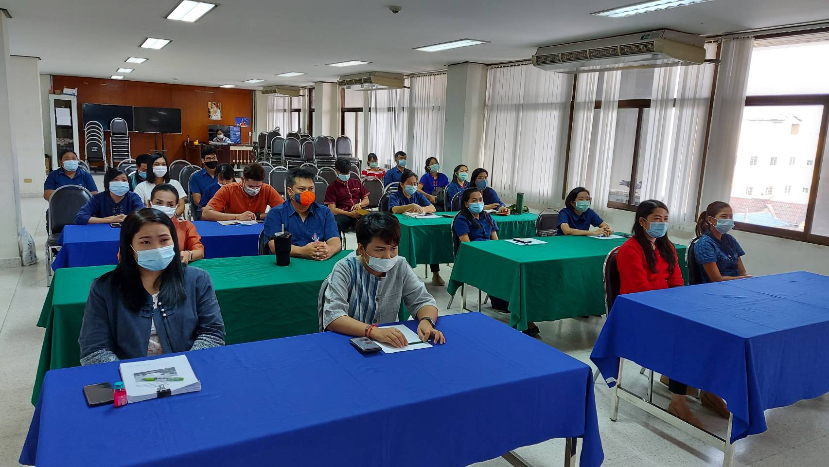 ในการนี้ นายจักรพันธ์ ตระการศาสตร์ นักวิชาการพัฒนาชุมชนชำนาญการพิเศษ รักษาราชการแทนพัฒนาการจังหวัดฉะเชิงเทรา ได้มอบหมายนายปัณณธร ล่ามแขก  ผู้อำนวยการกลุ่มงานส่งเสริมการพัฒนาชุมชน พร้อมด้วยนางอังคณา จิตรวิไลย ผู้อำนวยการกลุ่มงานประสานและสนับสนุนการบริหารงานพัฒนาชุมชน รับฟังการบรรยายตามโครงการฯ ร่วมกับนักวิชาการพัฒนาชุมชนปฏิบัติการ/ชำนาญการ (พัฒนากร) และเจ้าหน้าที่โครงการ ซึ่งเป็นกลุ่มเป้าหมายเข้าร่วมโครงการ จำนวนทั้งสิ้น 40 คน และในการจัดกิจกรรมครั้งนี้สำนักงานพัฒนาชุมชนจังหวัดฉะเชิงเทรา ได้ดำเนินการตามมาตรการป้องกันการแพร่ระบาดของโรค COVID-19 อย่างเคร่งครัด