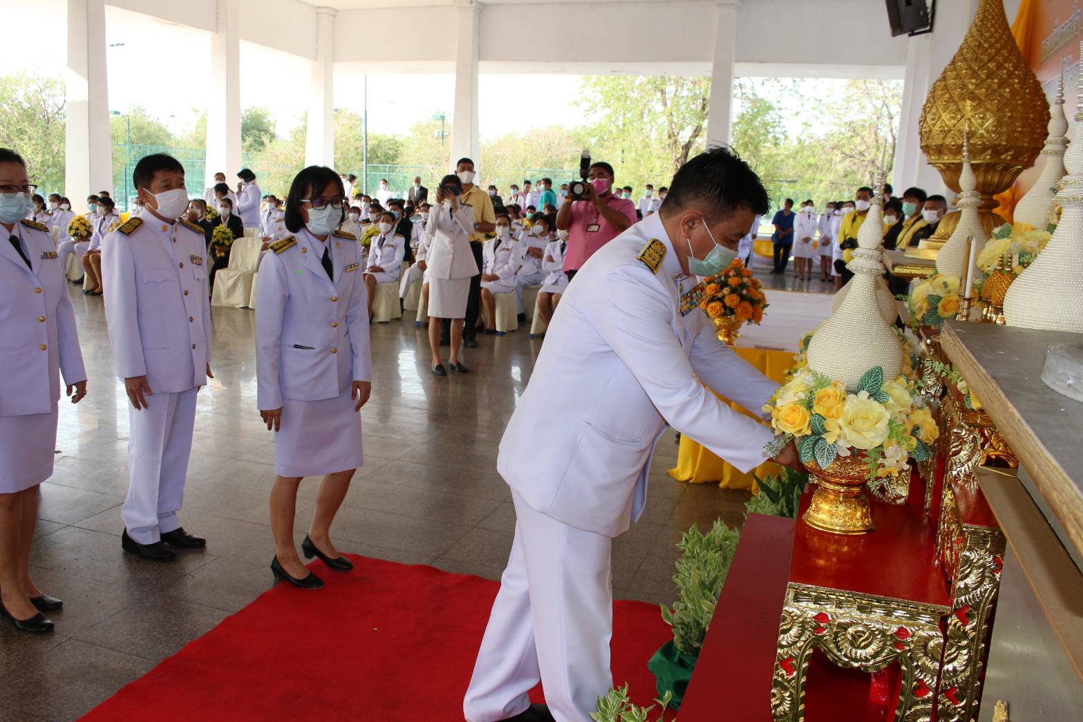 วันที่ 2 มีนาคม 2564 เวลา 08.30 น. ณ ศาลาจัตุรมุข หน้าศาลากลางจังหวัดฉะเชิงเทรา นายวรนัฐ ติรประเสริฐสิน พัฒนาการจังหวัดฉะเชิงเทรา พร้อมด้วยเจ้าหน้าที่สำนักงานพัฒนาชุมชนจังหวัดฉะเชิงเทรา เข้าร่วมพิธีวางพานพุ่มถวายราชสักการะแด่พระบาทสมเด็จพระบรมชนกาธิเบศร มหาภูมิพลอดุลยเดชมหาราช บรมนาถบพิตร และถวายความเคารพ