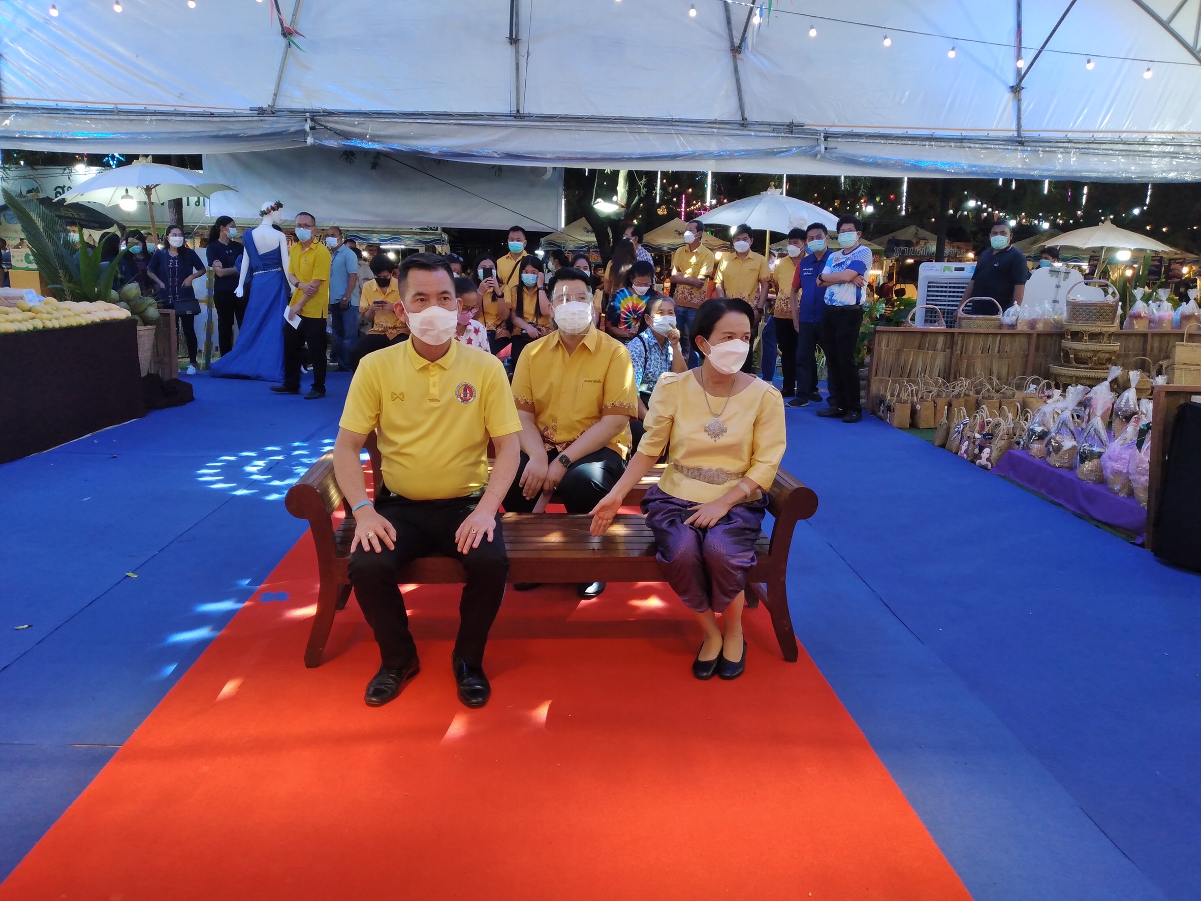 ???นายไมตรี ไตรติลานันท์ ผู้ว่าราชการจังหวัดฉะเชิงเทรา พร้อมด้วย นางจันทรรัตน์ ไตรติลานันท์ นายกเหล่ากาชาดจังหวัดฉะเชิงเทรา นายวรนัฐ ติรประเสริฐสิน พัฒนาการจังหวัดฉะเชิงเทรา นางวราภรณ์ ศิริวงศ์ นายอำเภอบ้านโพธิ์ และนายอิสรา เจริญชาศรี นายอำเภอราชสาส์น ได้เดินทางมาเยี่ยมชม และสนับสนุนกิจกรรมส่งเสริมการสวมใส่ผ้าไทย และผ้าลายเอกลักษณ์ประจำจังหวัดฉะเชิงเทรา อุดหนุนสินค้าชุมชน และยังได้ร่วมรับชมการแสดงจากอำเภอบ้านโพธิ์และอำเภอราชสาส์นโดยมีการแสดง ได้แก่ บาสโลป รำวงกะลา รำวงดาวพระศุกร์ โดยชมรมผู้สูงอายุ อ.บ้านโพธิ์และการแสดงคีตะมวยไทย อ.ราชสาส์น