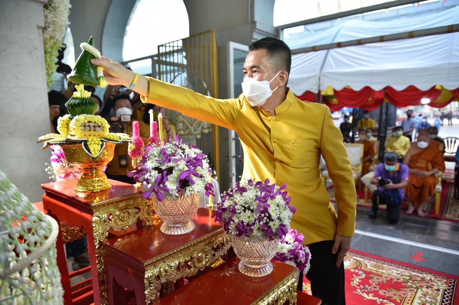 -ถวายทองแผ่น มาลัยกร ณ บริเวณด้านในพระอุโบสถวัดโสธรวรารามวรวิหาร