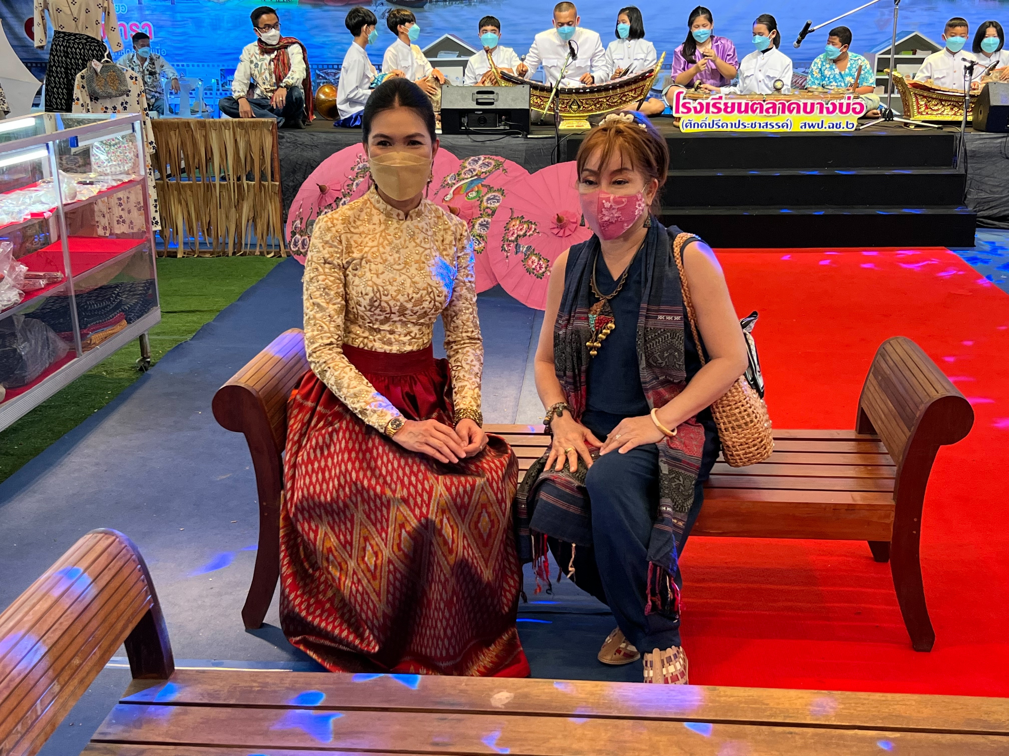 ??????นางจันทรรัตน์ ไตรติลานันท์ นายกเหล่ากาชาดจังหวัดฉะเชิงเทรา พร้อมด้วย นายเนตร ขันคำ พัฒนาการอำเภอบางคล้า นางสาวกมลชญา ประเสริฐสิน นายอำเภอแปลงยาว ได้เดินทางมาเยี่ยมชม และสนับสนุนกิจกรรมส่งเสริมการสวมใส่ผ้าไทย และผ้าลายเอกลักษณ์ประจำจังหวัดฉะเชิงเทรา อุดหนุนสินค้าชุมชน และยังร่วมรับชมการแสดงดนตรีไทย จากโรงเรียนตลาดบางบ่อ และรำวงย้อนยุค