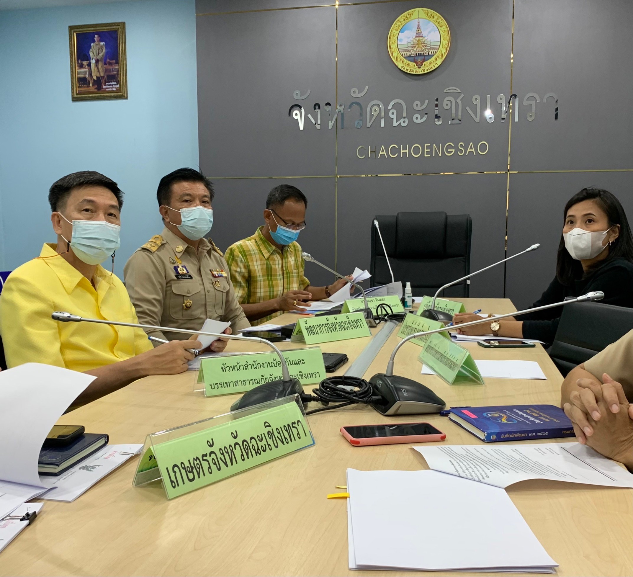 นายวรนัฐ ติรประเสริฐสิน พัฒนาการจังหวัดฉะเชิงเทรา หัวหน้าส่วนราชการ และหน่วยงานที่เกี่ยวข้องเข้าร่วมประชุมผ่านระบบ Zoom Cloud Meetings