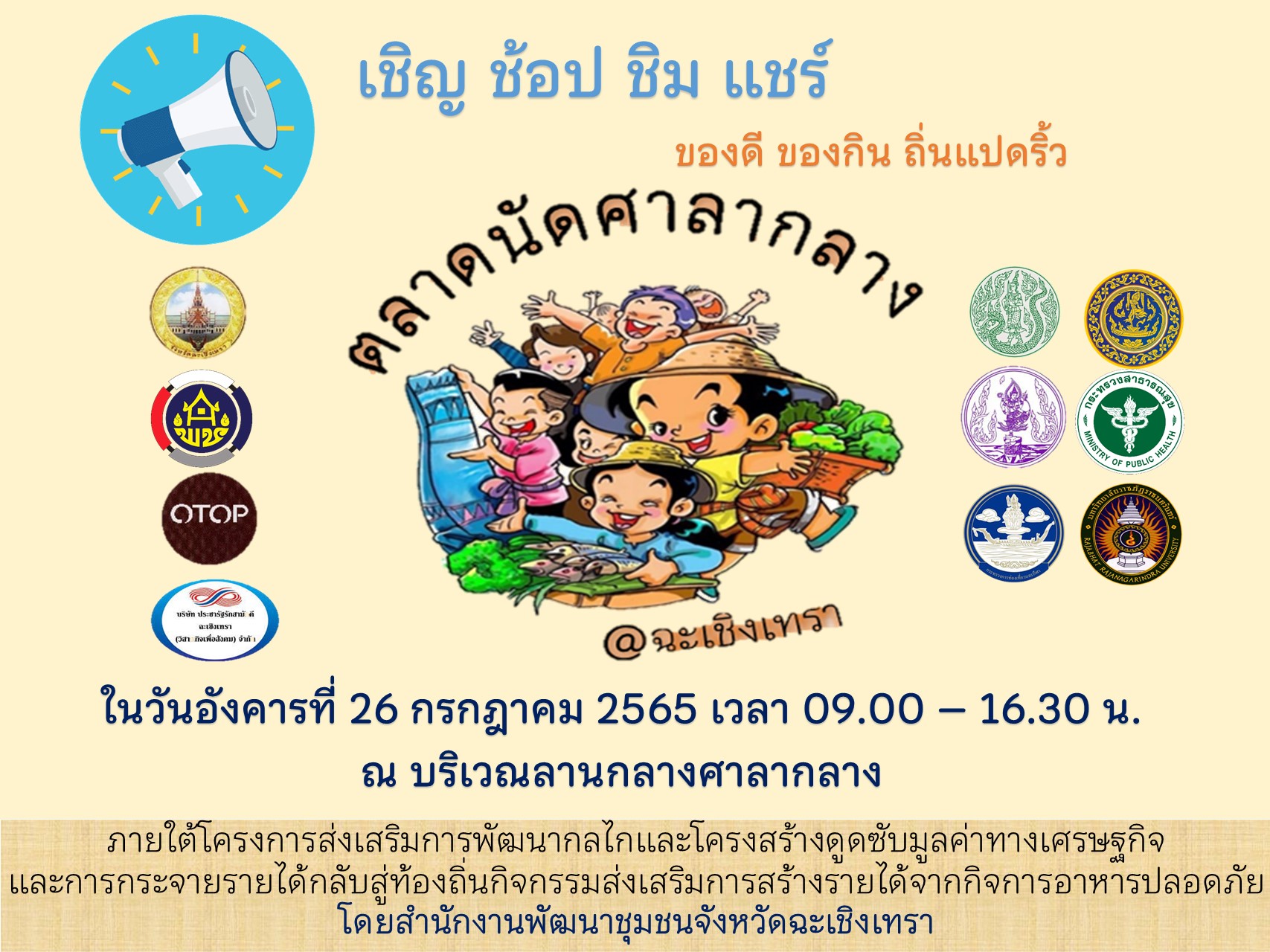 ข่าวประชาสัมพันธ์ ????ขอเชิญ ช้อป ชิม แชร์ ของดี ของกิน ถิ่นแปดริ้ว “ตลาดนัดศาลากลาง” วันอังคารที่ 26 กรกฎาคม 2565 เวลา 09.00 – 16.00 น. ณ บริเวณลานกลางศาลากลาง จังหวัดฉะเชิงเทรา วันที่ 20 ก.ค. 65 เวลา 11.02 น. ????ขอเชิญ ช้อป ชิม แชร์ ของดี ของกิน ถิ่นแปดริ้ว “ตลาดนัดศาลากลาง” วันอังคารที่ 26 กรกฎาคม 2565 เวลา 09.00 – 16.00 น. ณ บริเวณลานกลางศาลากลาง จังหวัดฉะเชิงเทรา (Visited 1 times, 1 visits today)Facebook iconFacebookTwitter iconTwitterLINE iconLine