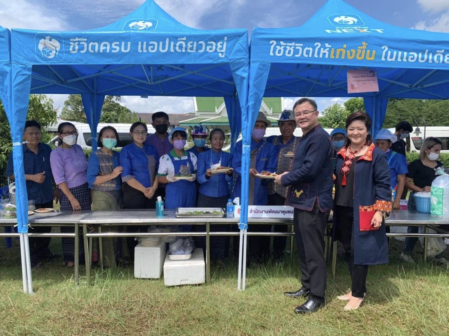 ในโอกาสนี้ สำนักงานพัฒนาชุมชนจังหวัดะเชิงเทรา ได้ประสานผู้แทนหมู่บ้านท่องเที่ยว OTOP นวัตวิถีบ้านเนินน้อย หมู่ 20 ตำบลท่าตะเกียบ อำเภอท่าตะเกียบ จังหวัดฉะเชิงเทรา นำผลิตภัณฑ์เด่นของชุมชนประกอบด้วย ไก่ย่างผาหินโยก คอหมูย่าง ข้าวเหนียว ส้มตำ มานำเสนอให้แขกที่มาร่วมงาน ได้ลองลิ้มชิมรสชาดของอาหารพื้นถิ่น ซึ่งท่านผู้ว่าราชการจังหวัดฯ และนายกเหล่ากาชาดได้ชื่นชม ขอบคุณทุกคนที่มาร่วมต้อนรับในวันนี้ และรับปากว่าจะลงไปเยี่ยมในพื้นที่ในโอกาสต่อไป