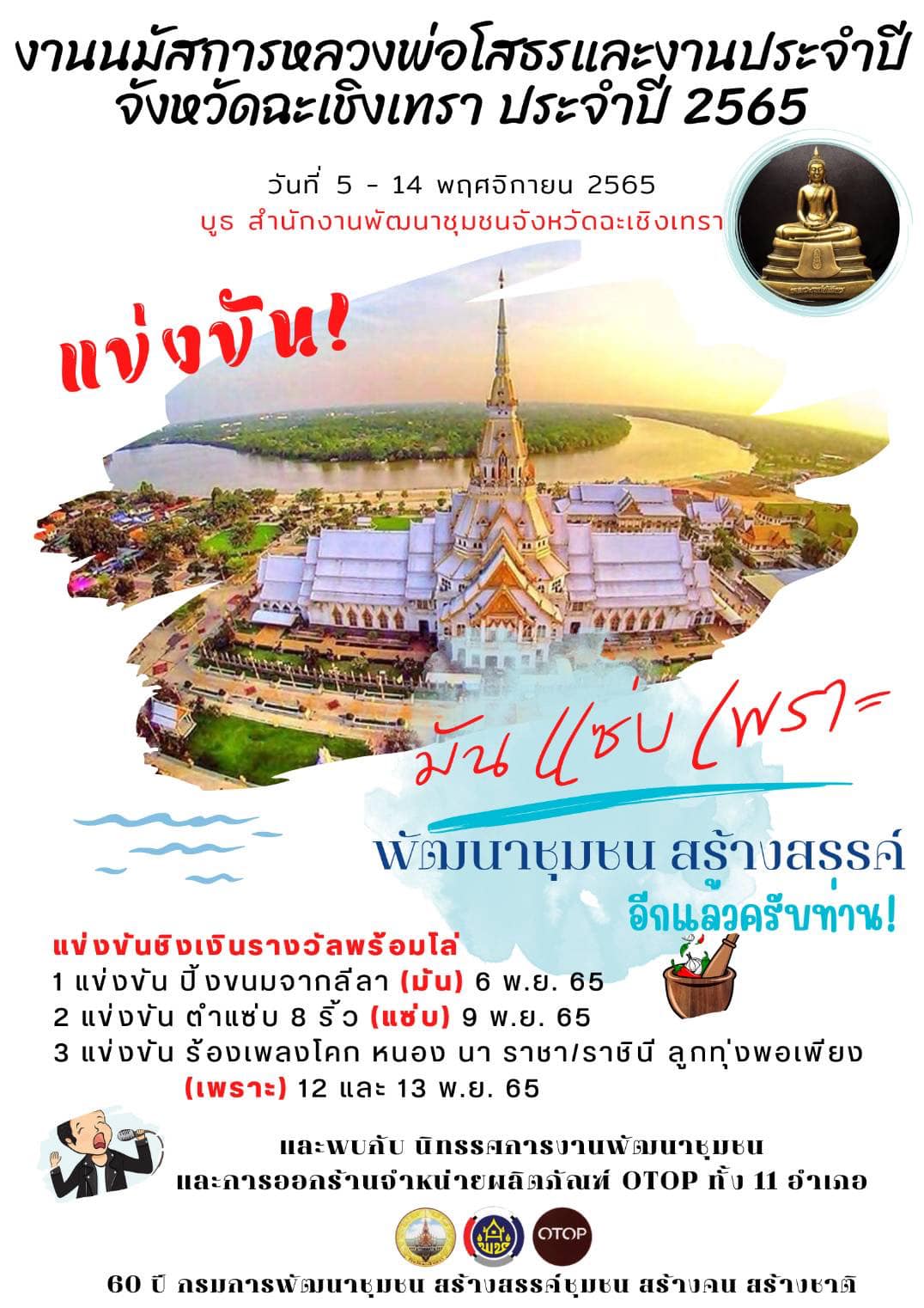❤️แล้วมา มันส์ แซ่บ เพราะ ด้วยกัน 5 – 14 พฤศจิกายน นี้ ในงานนมัสการหลวงพ่อโสธรและงานประจำปีจังหวัดฉะเชิงเทรา ประจำปี 2565 ณ บูธสำนักงานพัฒนาชุมชนจังหวัดฉะเชิงเทรา ❤️