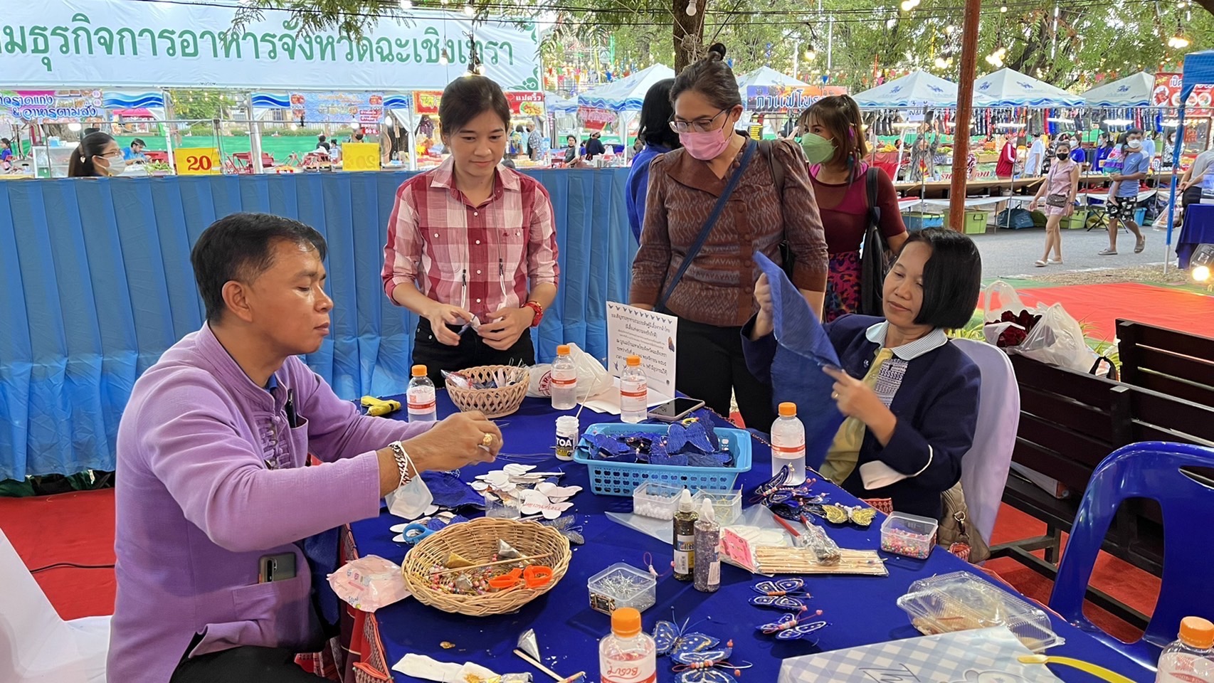 ?️???พช.ฉะเชิงเทราจัดกิจกรรมการประดิษฐ์ผีเสื้อจากผ้าไทย (ผีเสื้อแห่งความจงรักภักดี) ภายในบูธชมรมแม่บ้านมหาดไทยในงานนมัสการหลวงพ่อโสธร และงานประจำปีจังหวัดฉะเชิงเทรา ปี 2565
