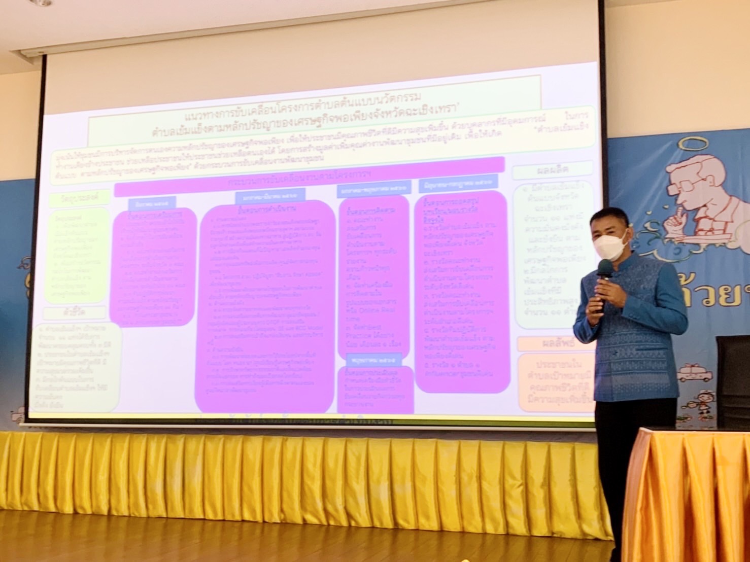 ??ในการนี้จังหวัดฉะเชิงเทราเป็นตัวแทนเขตตรวจราชการที่ 8 ในการนำเสนอแนวทางการขับเคลื่อนโครงการตำบลต้นแบบนวัตกรรมตำบลเข้มแข็งตามหลักปรัชญาของเศรษฐกิจพอเพียงจังหวัดฉะเชิงเทรา