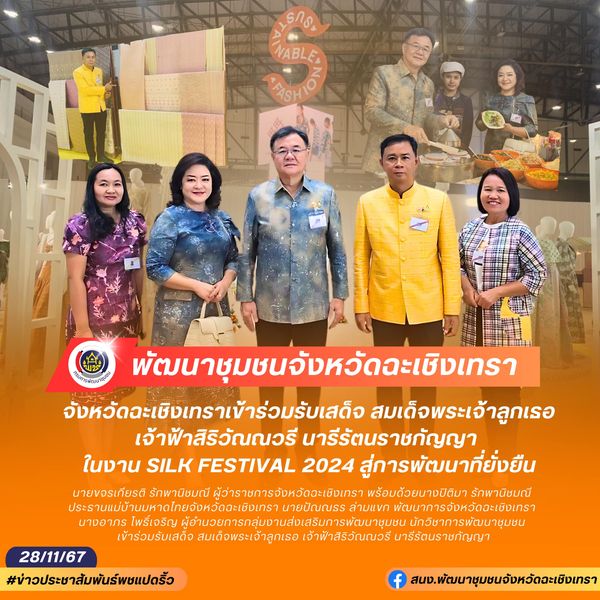 💃จังหวัดฉะเชิงเทราเข้าร่วมรับเสด็จ สมเด็จพระเจ้าลูกเธอ เจ้าฟ้าสิริวัณณวรี นารีรัตนราชกัญญา ในงาน Silk Festival 2024 สู่การพัฒนาที่ยั่งยืน