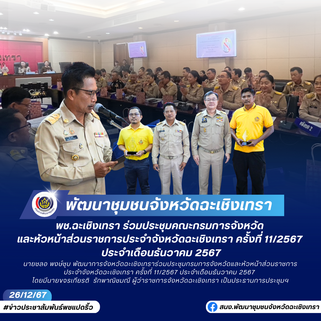 ✍🏻พช.ฉะเชิงเทรา ร่วมประชุมคณะกรมการจังหวัด และหัวหน้าส่วนราชการประจำจังหวัดฉะเชิงเทรา ครั้งที่ 11/2567 ประจำเดือนธันวาคม 2567