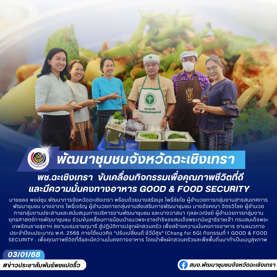 🥗พช.ฉะเชิงเทรา ขับเคลื่อนกิจกรรมเพื่อคุณภาพชีวิตที่ดีและมีความมั่นคงทางอาหาร GOOD & FOOD SECURITY