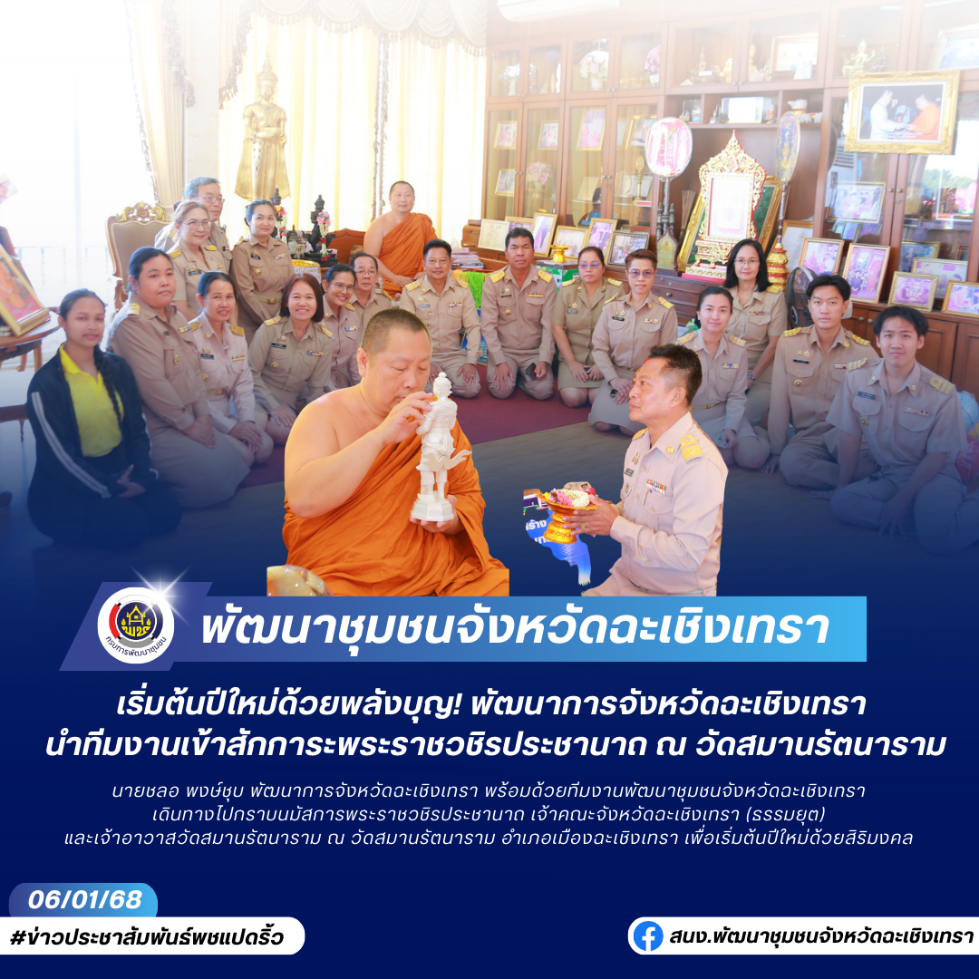 เริ่มต้นปีใหม่ด้วยพลังบุญ! พัฒนาการจังหวัดฉะเชิงเทรา นำทีมงานเข้าสักการะพระราชวชิรประชานาถ ณ วัดสมานรัตนาราม