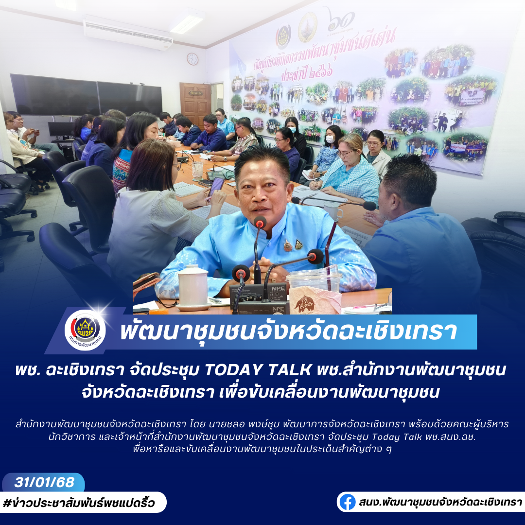 🔥 พช. ฉะเชิงเทรา จัดประชุม Today Talk พช.สนง.ฉช. เพื่อขับเคลื่อนงานพัฒนาชุมชน