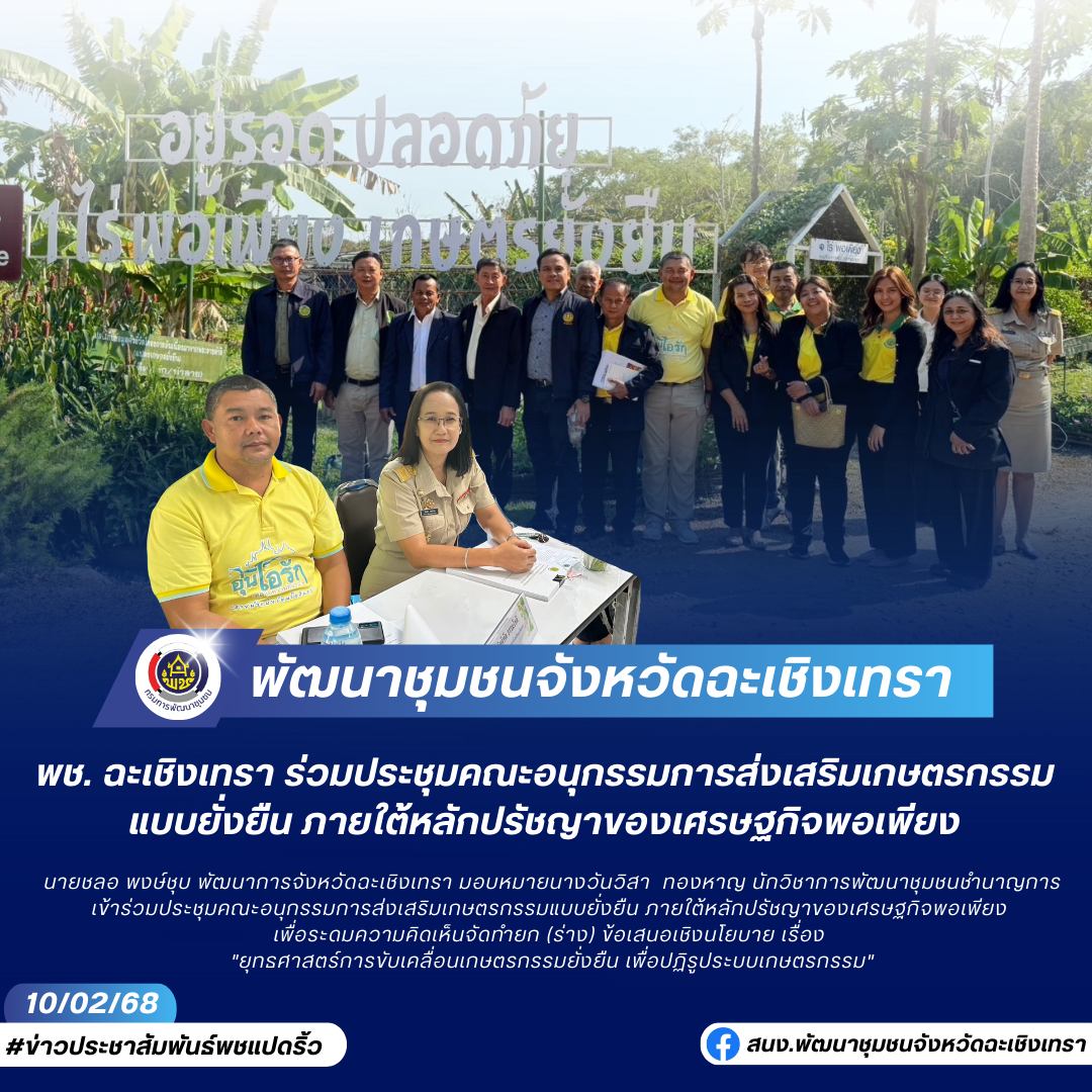 📢 พช. ฉะเชิงเทรา ร่วมประชุมคณะอนุกรรมการส่งเสริมเกษตรกรรมแบบยั่งยืน ภายใต้หลักปรัชญาของเศรษฐกิจพอเพียง