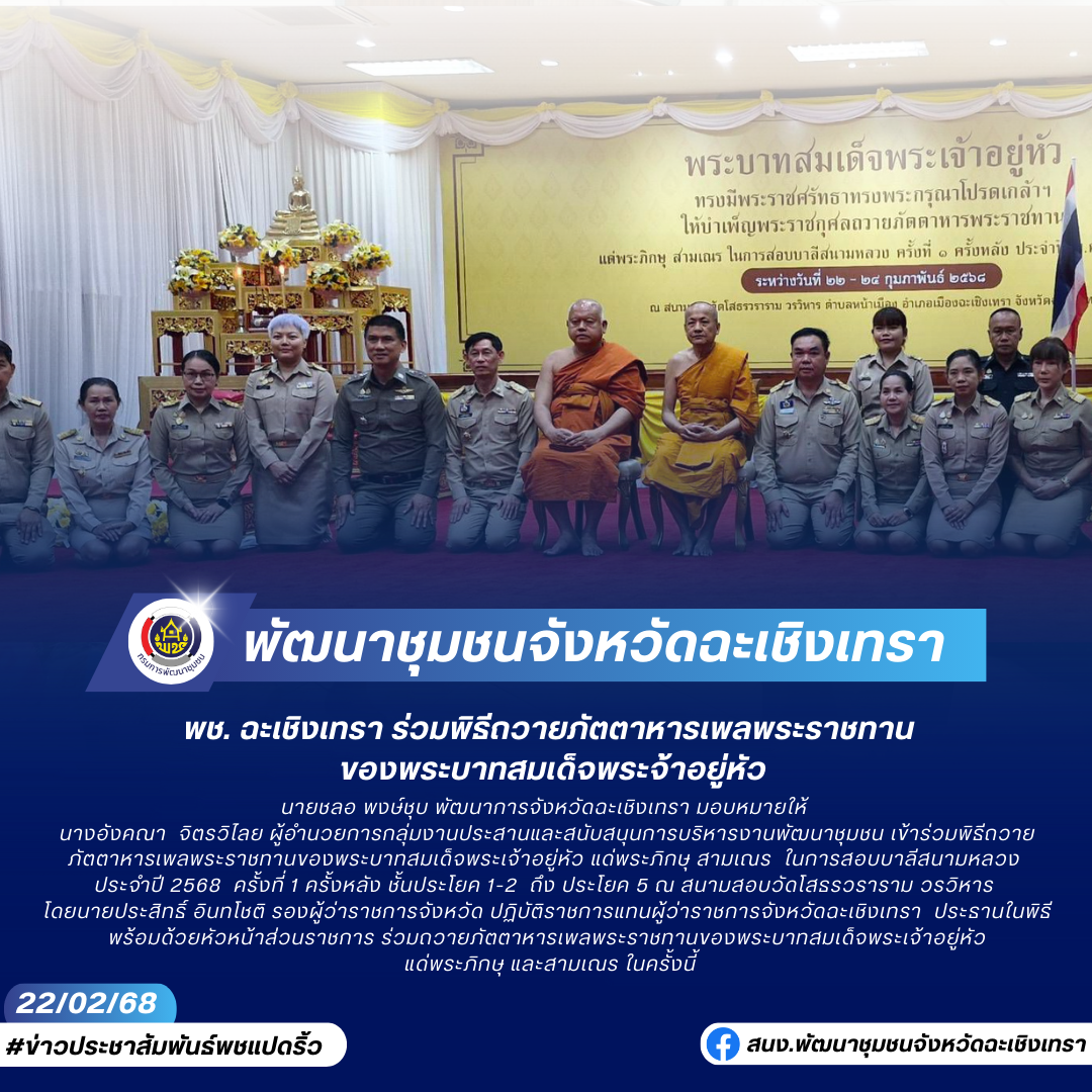 พช. ฉะเชิงเทรา ร่วมพิธีถวายภัตตาหารเพลพระราชทาน ของพระบาทสมเด็จพระจ้าอยู่หัว