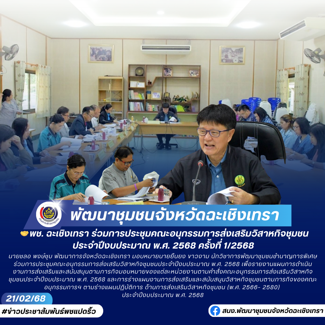 🤝พช. ฉะเชิงเทรา ร่วมการประชุมคณะอนุกรรมการส่งเสริมวิสาหกิจชุมชนประจำปีงบประมาณ พ.ศ. 2568 ครั้งที่ 1/2568