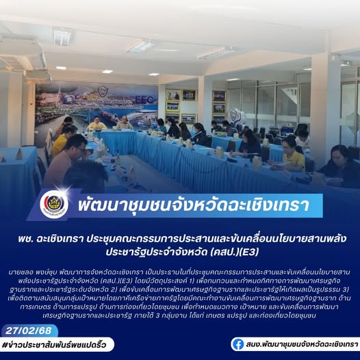 🤝พช. ฉะเชิงเทรา ประชุมคณะกรรมการประสานและขับเคลื่อนนโยบายสานพลังประชารัฐประจำจังหวัด (คสป.)(E3)