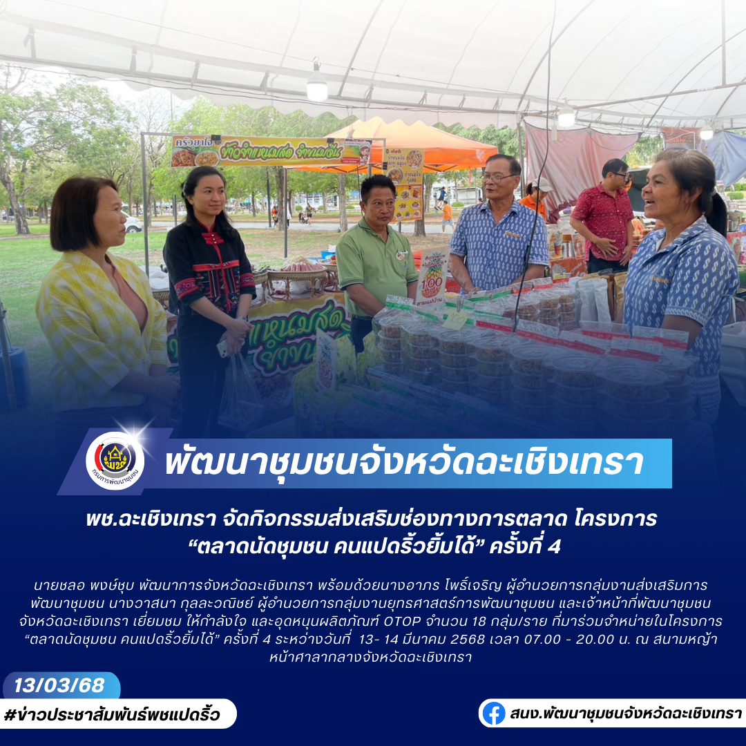 🛍️พช.ฉะเชิงเทรา จัดกิจกรรมส่งเสริมช่องทางการตลาด โครงการ “ตลาดนัดชุมชน คนแปดริ้วยิ้มได้” ครั้งที่ 4