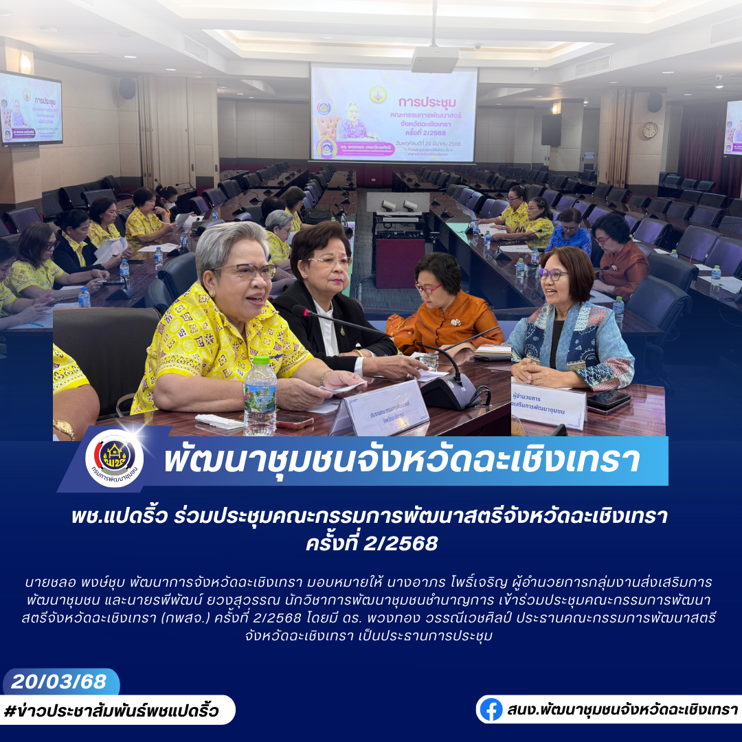พช.แปดริ้ว ร่วมประชุมคณะกรรมการพัฒนาสตรีจังหวัดฉะเชิงเทรา ครั้งที่ 2/2568