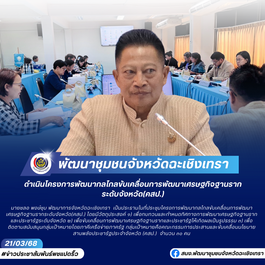 🥭🍧🌴พช. ฉะเชิงเทรา ดำเนินโครงการพัฒนากลไกลขับเคลื่อนการพัฒนาเศรษฐกิจฐานรากระดับจังหวัด(คสป.)
