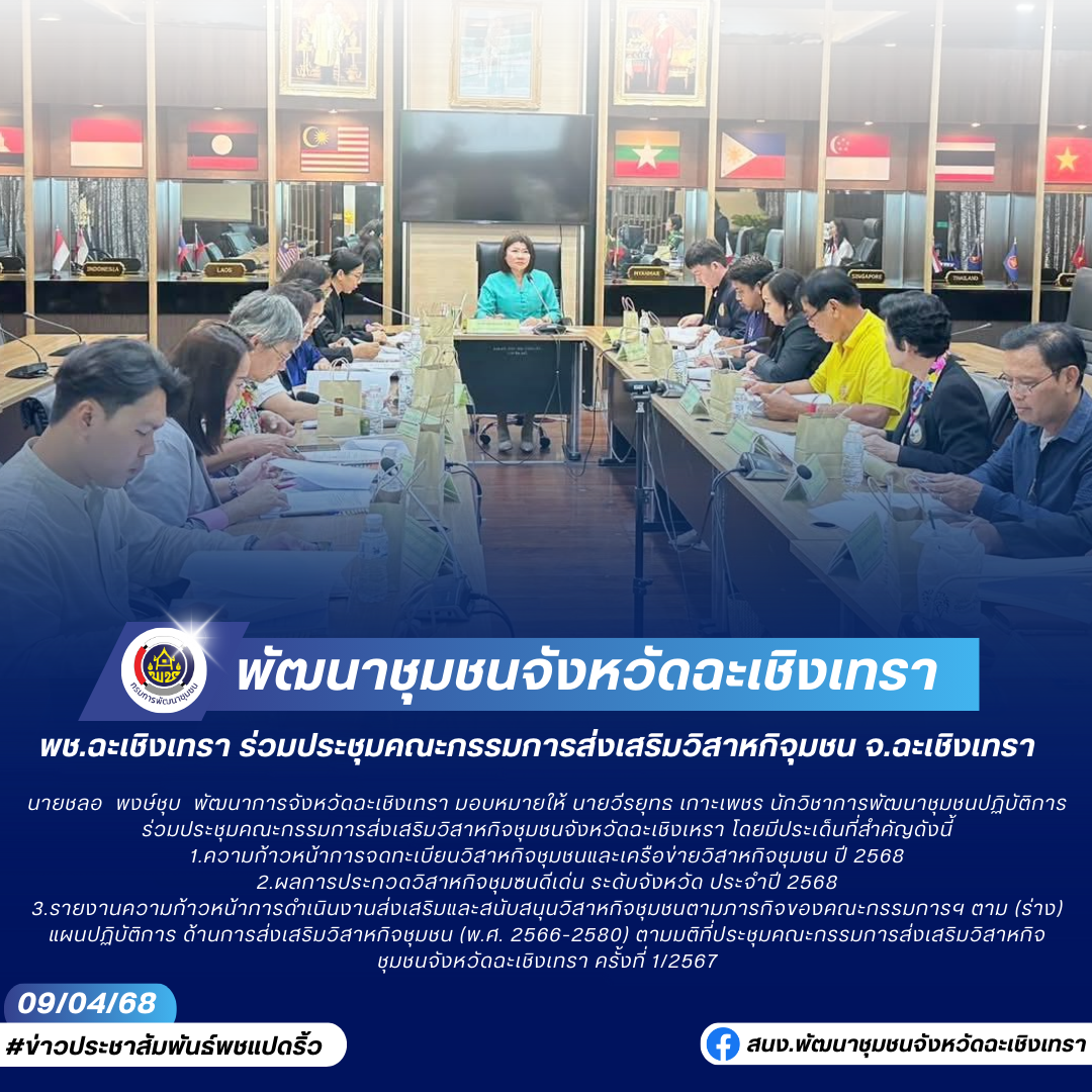 พช.ฉะเชิงเทรา ร่วมประชุมคณะกรรมการส่งเสริมวิสาหกิจุมชน จ.ฉะเชิงเทรา