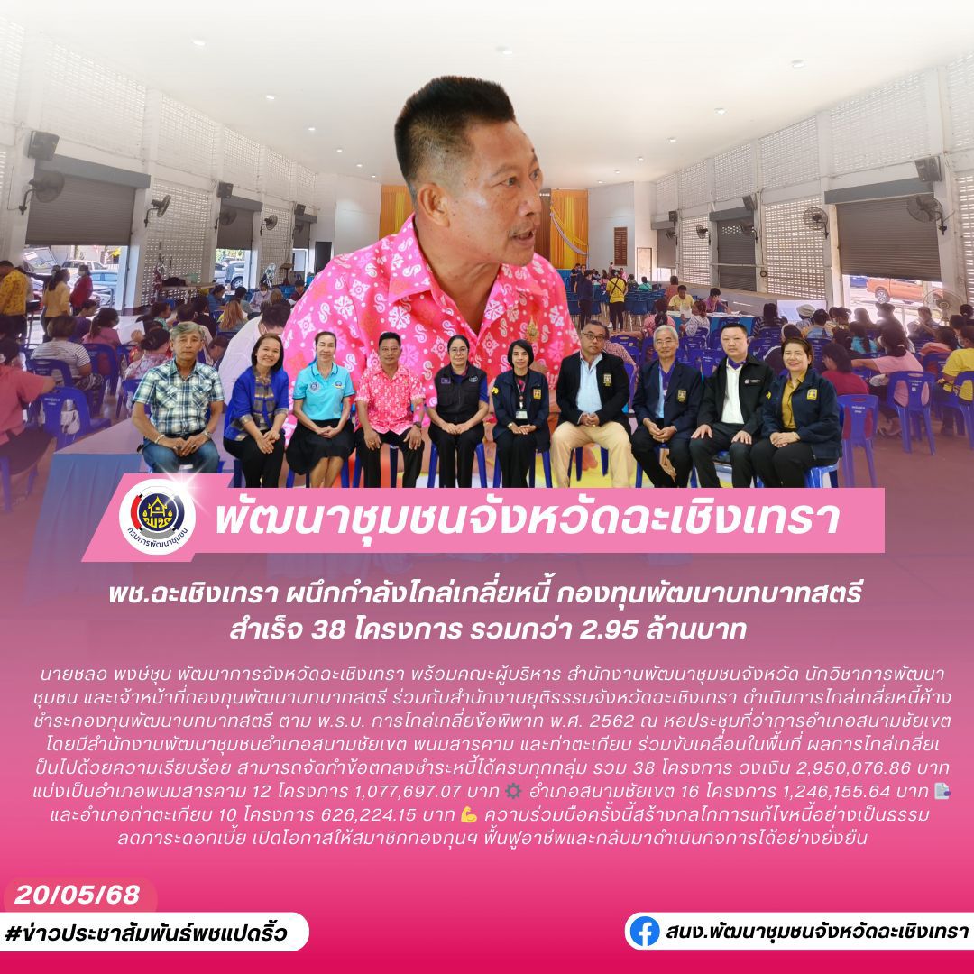 🤝💰 พช.ฉะเชิงเทรา ผนึกกำลังไกล่เกลี่ยหนี้ กองทุนพัฒนาบทบาทสตรี สำเร็จ 38 โครงการ รวมกว่า 2.95 ล้านบาท ✨