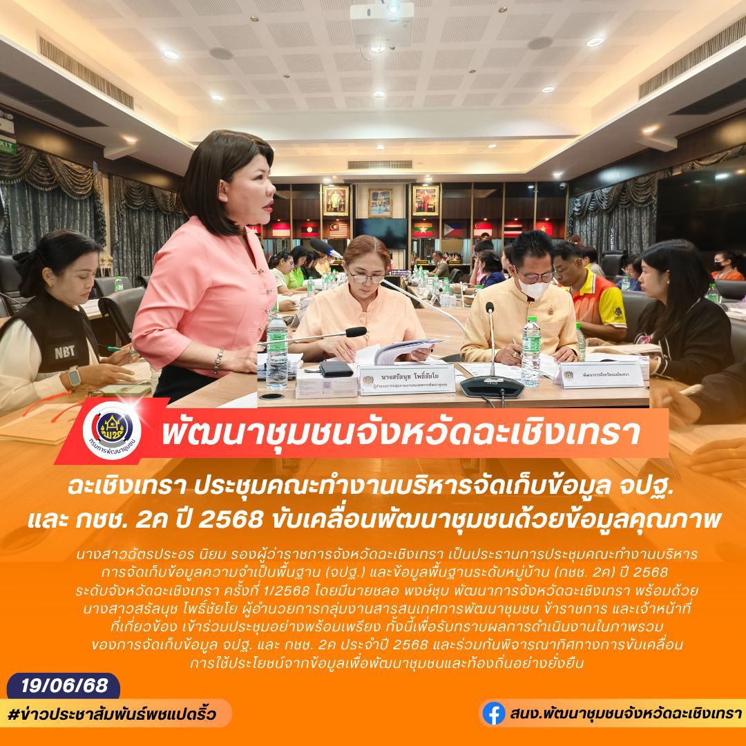 📰 พช.ฉะเชิงเทรา ประชุมคณะทำงานบริหารจัดเก็บข้อมูล จปฐ. และ กชช. 2ค ปี 2568 ขับเคลื่อนพัฒนาชุมชนด้วยข้อมูลคุณภาพ 📊📌