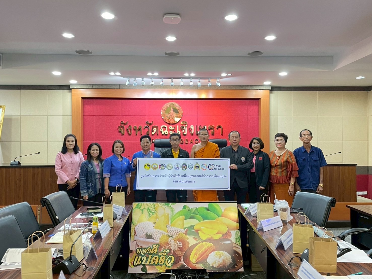 1. การมอบป้ายศูนย์สร้างความร่วมมือผู้นำนักขับเคลื่อนยุทธศาสตร์นำการเปลี่ยนแปลง จังหวัดฉะเชิงเทรา