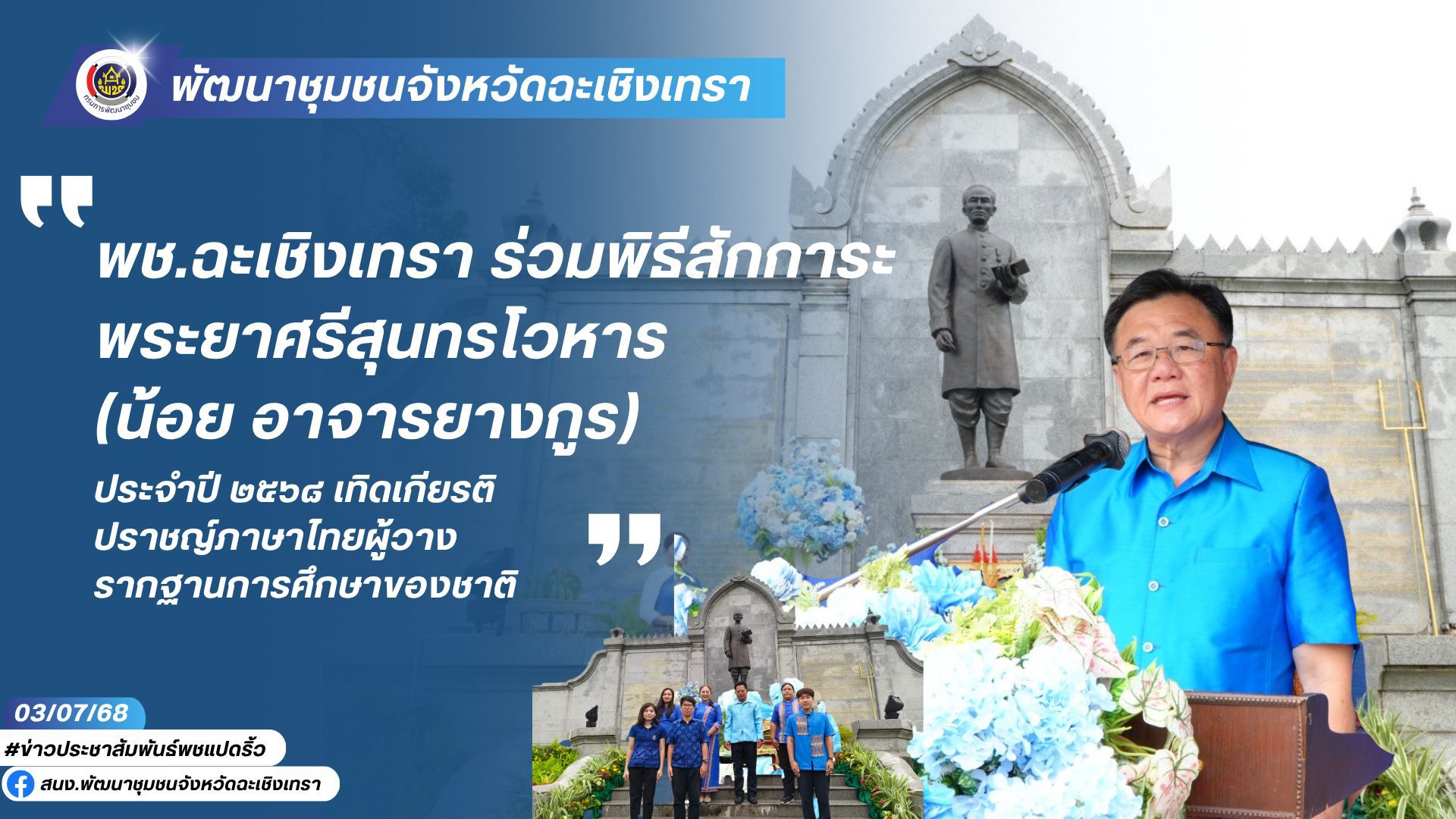 พช.ฉะเชิงเทรา ร่วมพิธีสักการะพระยาศรีสุนทรโวหาร (น้อย อาจารยางกูร) ประจำปี ๒๕๖๘ เทิดเกียรติปราชญ์ภาษาไทยผู้วางรากฐานการศึกษาของชาติ 🙏📚🇹🇭