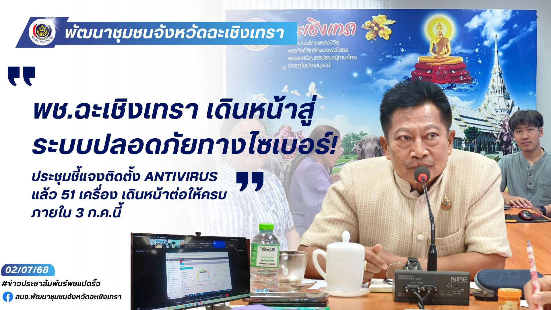 🖥️🛡️ พช.ฉะเชิงเทรา เดินหน้าสู่ระบบปลอดภัยทางไซเบอร์! ประชุมชี้แจงติดตั้ง Antivirus แล้ว 51 เครื่อง เดินหน้าต่อให้ครบภายใน 3 ก.ค.นี้