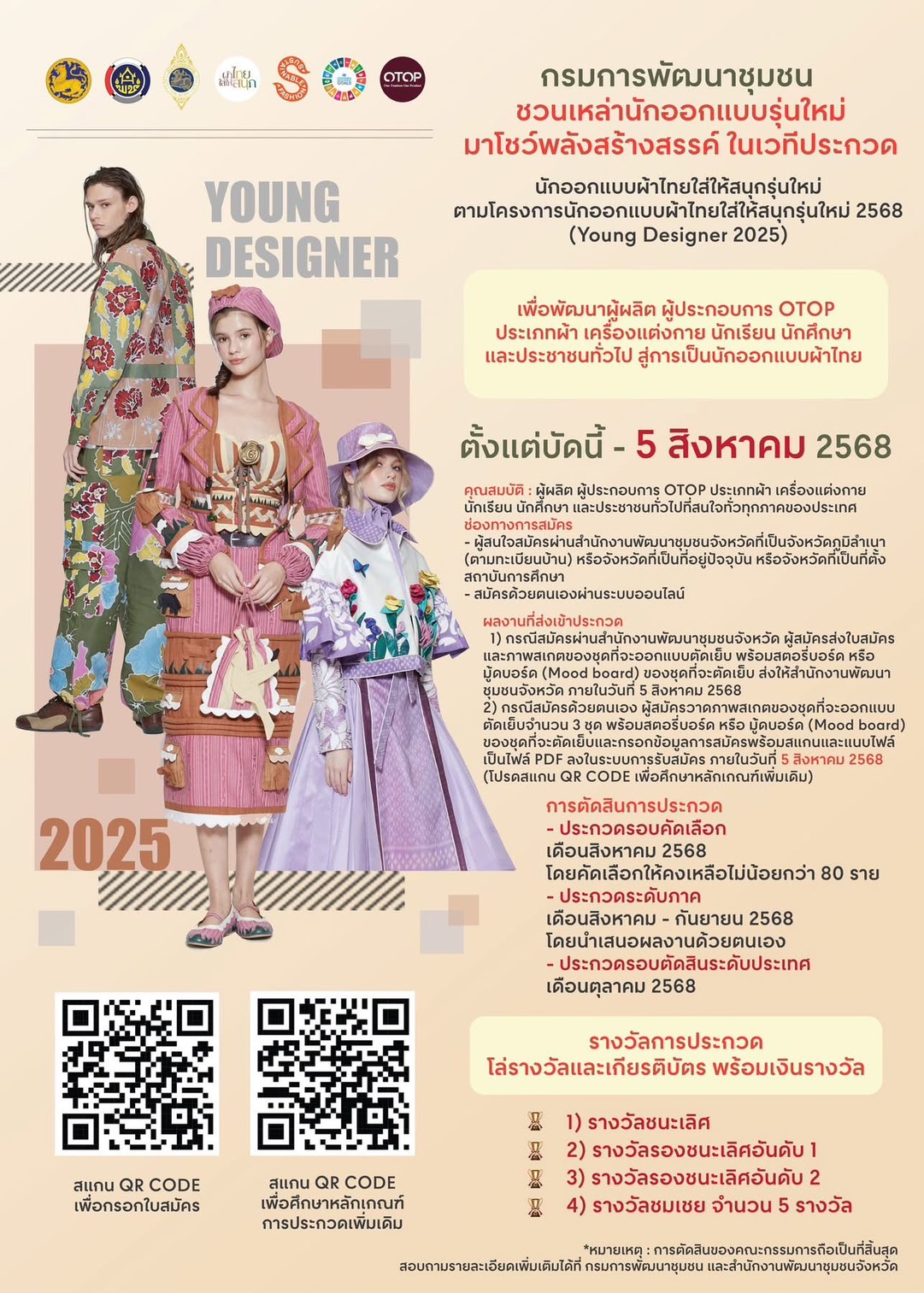 กรมการพัฒนาชุมชน กำหนดดำเนินงานโครงการนักออกแบบผ้าไทยใส่ให้สนุกรุ่นใหม่ 2568 (Young Designer 2025) โดยมีวัตถุประสงค์ ดังนี้
