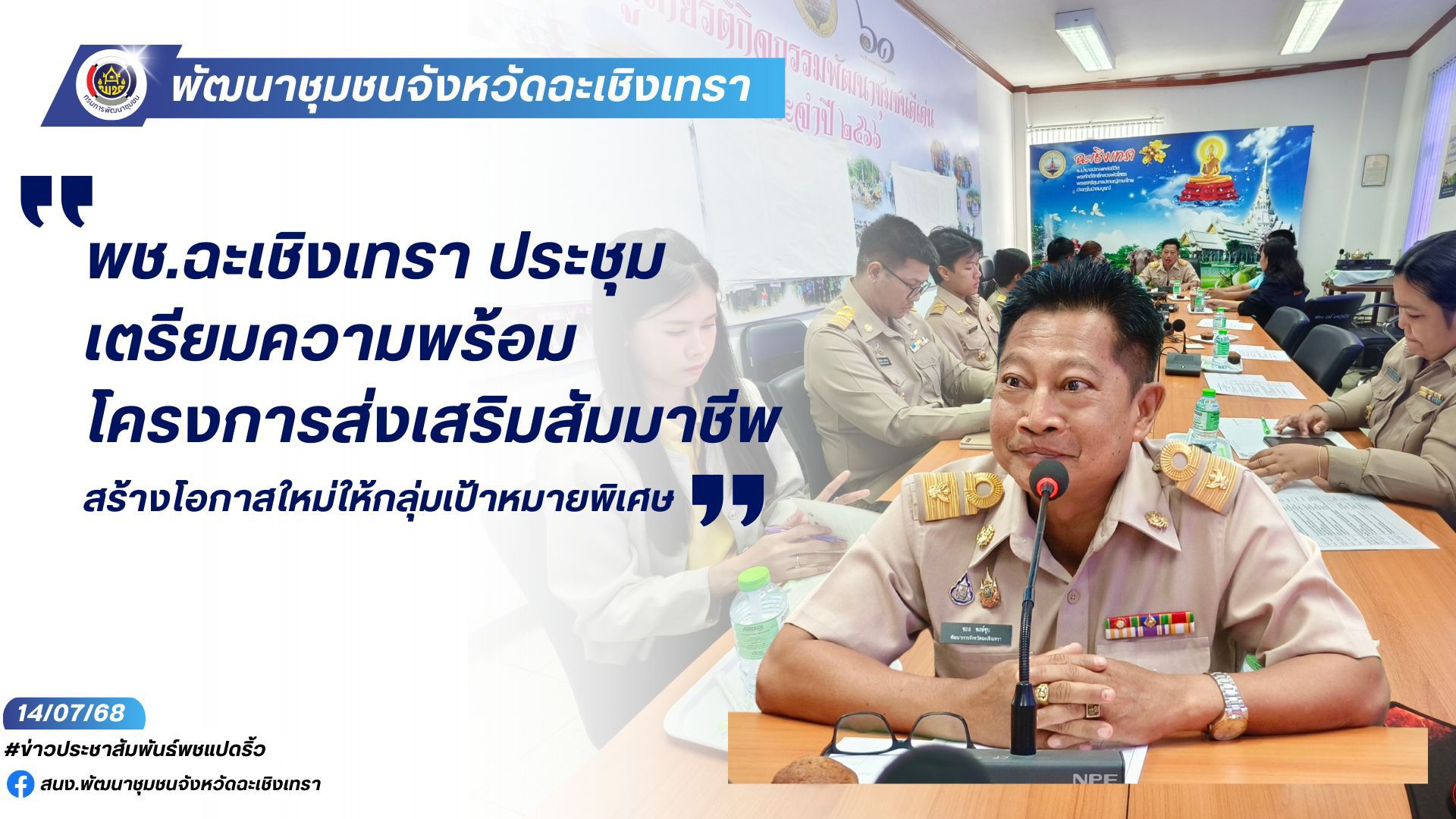 📢 พช.ฉะเชิงเทรา ประชุมเตรียมความพร้อมโครงการส่งเสริมสัมมาชีพ สร้างโอกาสใหม่ให้กลุ่มเป้าหมายพิเศษ