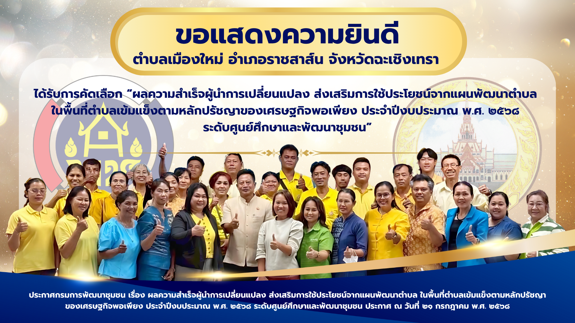 🎉 ขอแสดงความยินดีกับตำบลเมืองใหม่ อำเภอราชสาส์น จังหวัดฉะเชิงเทรา 🎉