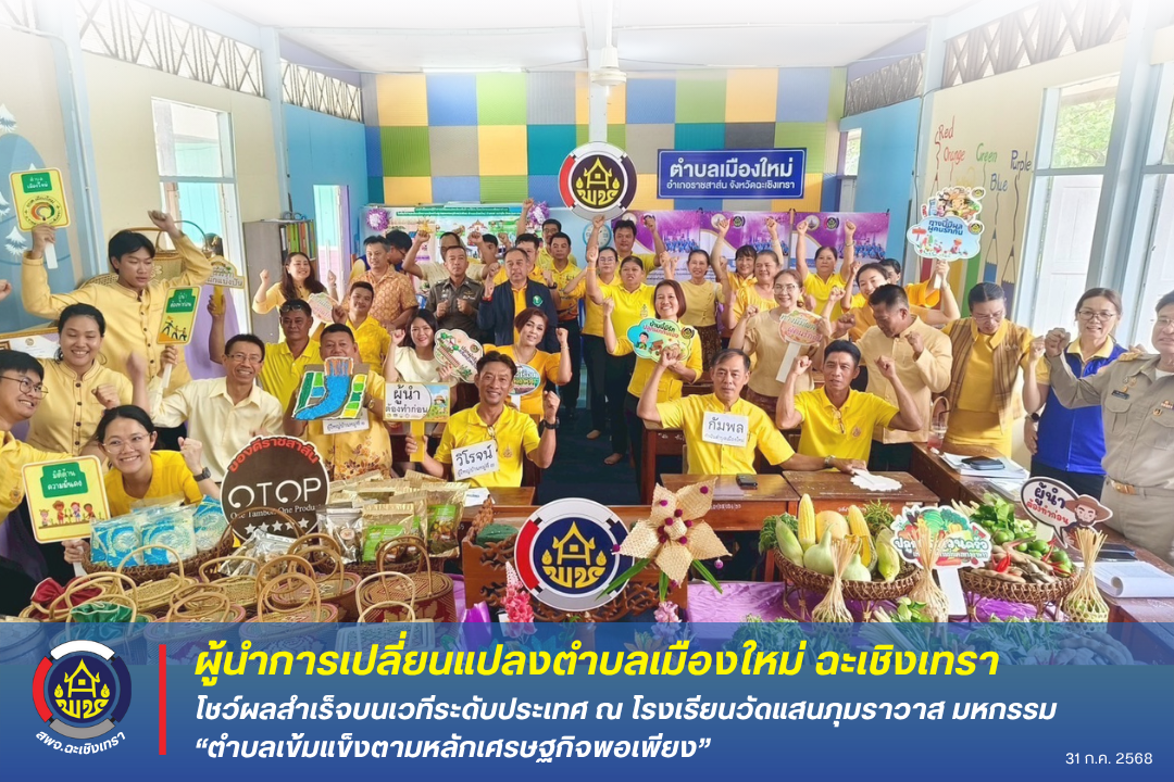 ผู้นำการเปลี่ยนแปลงตำบลเมืองใหม่ ฉะเชิงเทรา โชว์ผลสำเร็จบนเวทีระดับประเทศ ณ โรงเรียนวัดแสนภุมราวาส มหกรรม “ตำบลเข้มแข็งตามหลักเศรษฐกิจพอเพียง”