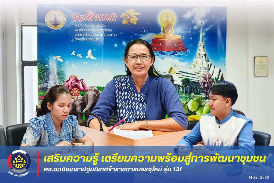 (14 ส.ค. 68) นายชลอ พงษ์ชุบ พัฒนาการจังหวัดฉะเชิงเทรา มอบหมายให้นางอังคณา ผู้อำนวยการกลุ่มงานประสานและสนับสนุนการบริหารงานพัฒนาชุมชน จัดการปฐมนิเทศให้แก่ข้าราชการบรรจุใหม่พัฒนากรรุ่นที่ 131 เพื่อสร้างความเข้าใจในบทบาทหน้าที่และเตรียมความพร้อมก่อนปฏิบัติงานในพื้นที่จริง
