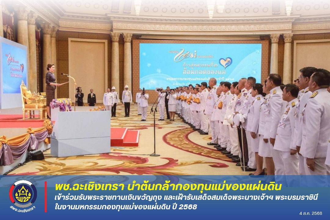 พช.ฉะเชิงเทรา นำต้นกล้ากองทุนแม่ของแผ่นดิน เข้าร่วมรับพระราชทานเงินขวัญถุง และเฝ้ารับเสด็จสมเด็จพระนางเจ้าฯ พระบรมราชินี ในงานมหกรรมกองทุนแม่ของแผ่นดิน ปี 2568
