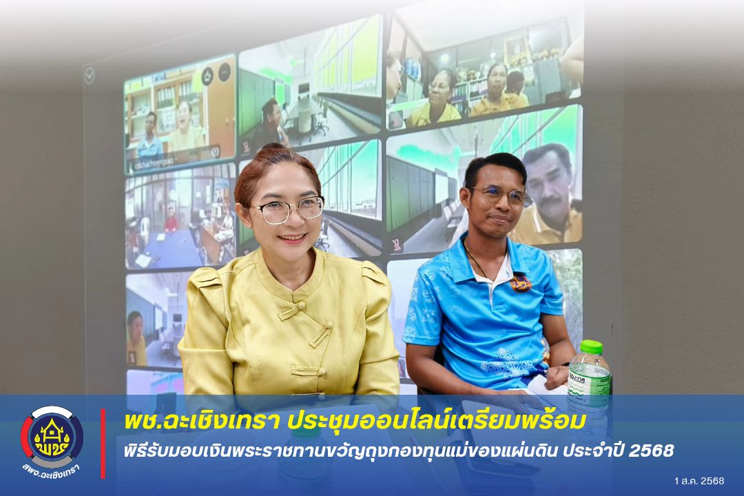 พช.ฉะเชิงเทรา ประชุมออนไลน์เตรียมพร้อมพิธีรับมอบเงินพระราชทานขวัญถุงกองทุนแม่ของแผ่นดิน ประจำปี 2568