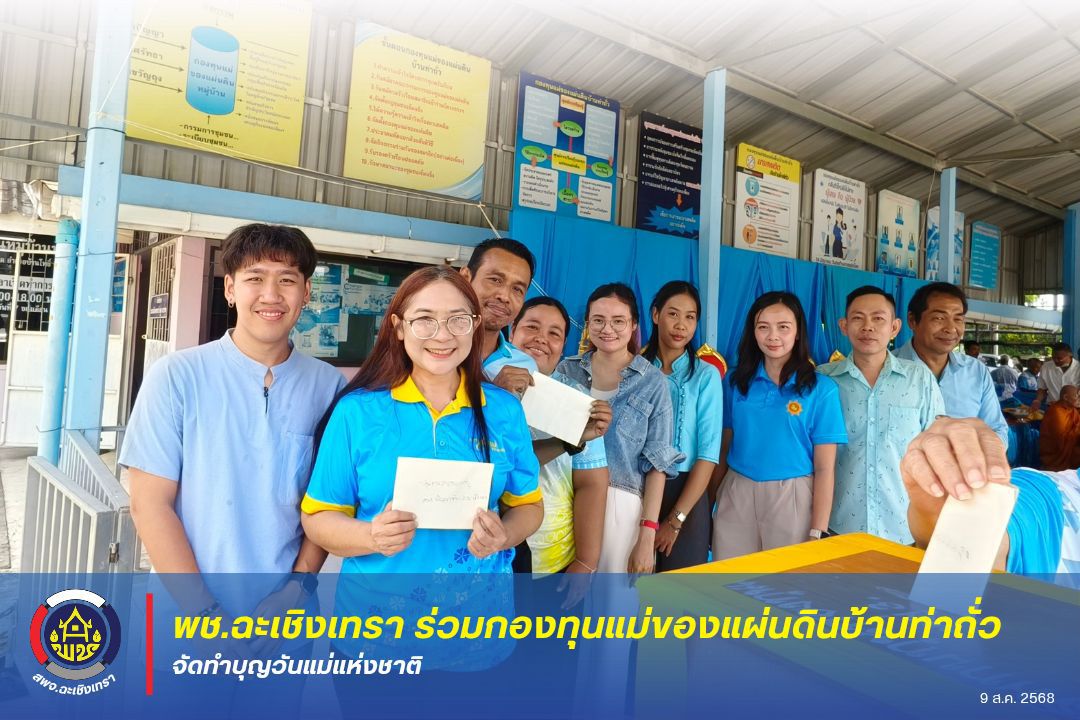 (9 ส.ค. 68) นางสรัลนุช โพธิ์ชัยโย ผู้อำนวยการกลุ่มงานสารสนเทศการพัฒนาชุมชน พร้อมด้วย นางสาวจิรัชยา พันแตง นักวิชาการพัฒนาชุมชนชำนาญการ นายวงศธร จิตรวิไลย นักวิชาการพัฒนาชุมชนปฏิบัติการ และคณะกรรมการเครือข่ายกองทุนแม่ของแผ่นดินจังหวัดฉะเชิงเทรา ร่วมกิจกรรมทำบุญตักบาตร กับคณะกรรมการกองทุนแม่ของแผ่นดินบ้านท่าถั่ว หมู่ที่ 3 ตำบลบางกรูด อำเภอบ้านโพธิ์ จังหวัดฉะเชิงเทรา เนื่องในวันแม่แห่งชาติ เพื่อถวายเป็นพระราชกุศลแด่สมเด็จพระนางเจ้าฯ พระบรมราชินี และสืบสานประเพณีไทย พร้อมทั้งปลูกฝังความกตัญญูรู้คุณแม่ในชุมชน