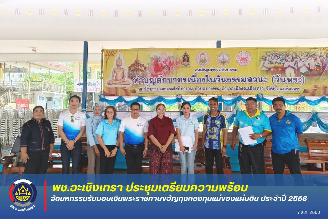 พช.ฉะเชิงเทรา ร่วมกับคณะกรรมการเครือข่ายกองทุนแม่ของแผ่นดินจังหวัดฉะเชิงเทราประชุมเตรียมความพร้อมจัดมหกรรมรับมอบเงินพระราชทานขวัญถุงกองทุนแม่ของแผ่นดิน ประจำปี 2568