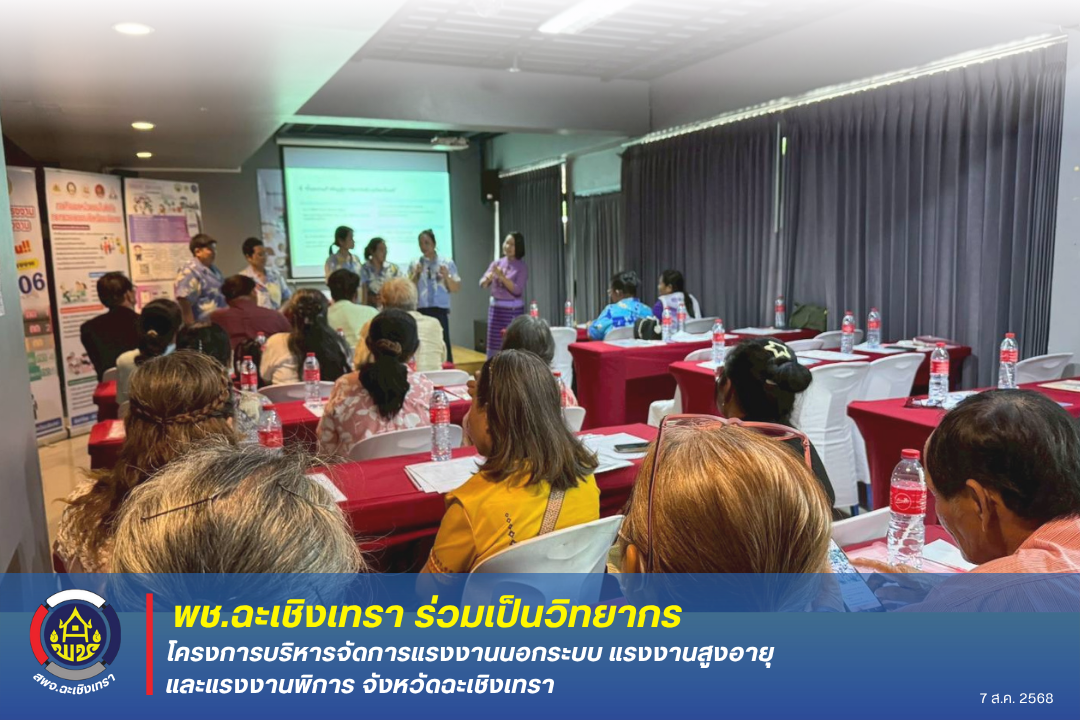 พช.ฉะเชิงเทรา ร่วมเป็นวิทยากรโครงการบริหารจัดการแรงงานนอกระบบ แรงงานสูงอายุ และแรงงานพิการ จังหวัดฉะเชิงเทรา