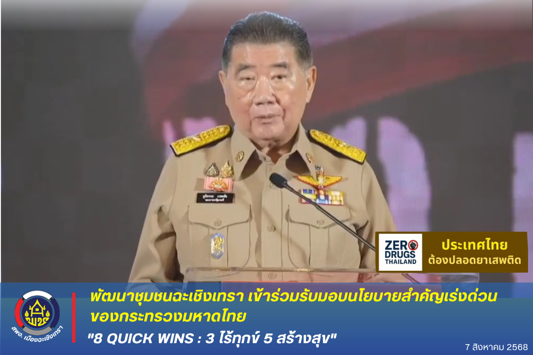 ‼️breaking news พช. ฉะเชิงเทรา เข้าร่วมการมอบนโยบายสำคัญเร่งด่วนของกระทรวงมหาดไทย “8 Quick Wins: 3 ไร้ทุกข์ 5 สร้างสุข” แก่ผู้บริหารระดับสูง เพื่อขับเคลื่อนงาน “บำบัดทุกข์ บำรุงสุข” รองนายกรัฐมนตรีและรัฐมนตรีว่าการกระทรวงมหาดไทย