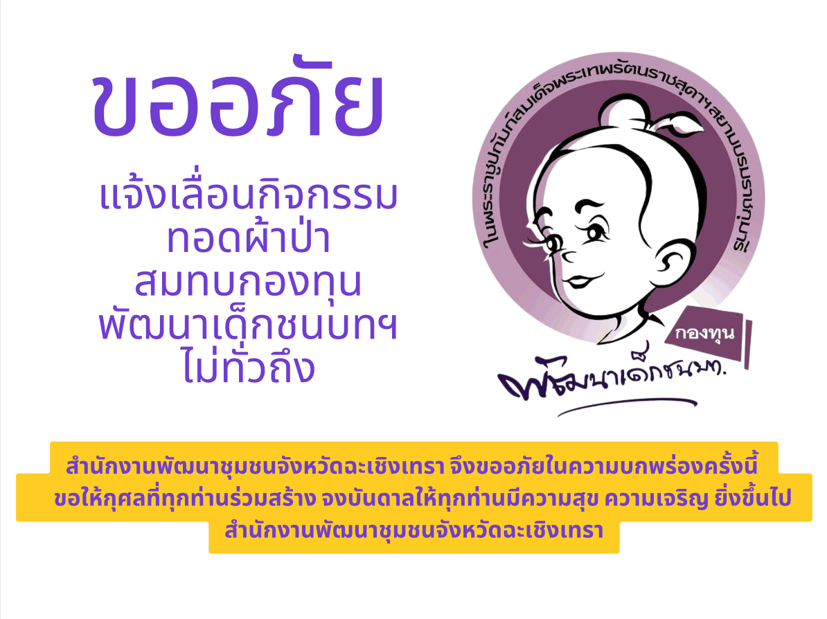 ประกาศจังหวัดฉะเชิงเทรา ลงวันที่ 18 กรกฏาคม 2568 เรื่อง รับสมัครสอบคัดเลือกบุคคลเพื่แต่งตั้งเป็นอาสาพัฒนา (อสพ.) รุ่นที่ 77 ในพื้นที่จังหวัดฉะเชิงเทรา
