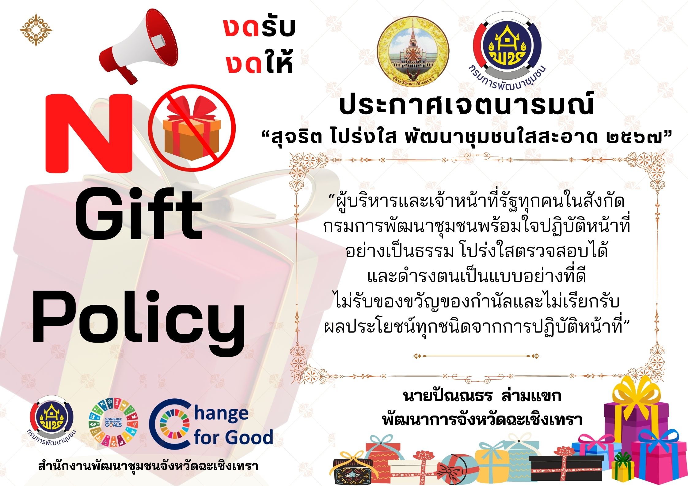 ถึง นายอำเภอเมือง/บางคล้า/บางน้ำเปรี้ยว/สนามชัยเขต/ราชสาส์น/ท่าตะเกียบ/คลองเขื่อน หนังสือ ที่ ฉช0019/ว4778 ลงวันที่ 27 ส.ค. 2568 เรื่อง การจัดงานวันพัฒนาชุมชน ประจำปี 2568