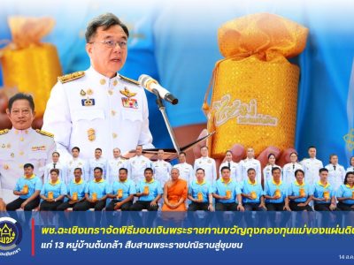 พช.ฉะเชิงเทราจัดพิธีมอบเงินพระราชทานขวัญถุงกองทุนแม่ของแผ่นดิน แก่ 13 หมู่บ้านต้นกล้า สืบสานพระราชปณิธานสู่ชุมชน โดย chachoengsao วันที่ 15 ส.ค. 2568